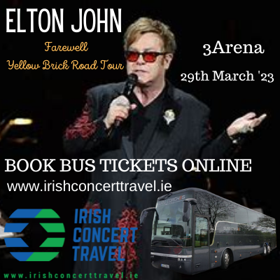 Bus to Elton John 3Arena 29th March 2023 from Sligo, Carrick on Shannon, Longford, Mullingar, Galway. Athlone, Mayo